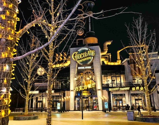 An indoor land inspired by the Kung Fu Panda movies and Chinese culture, featuring the Valley of Peace and Jade Palace. Guests can ride Journey of the Dragon Warrior and experience themed shows, food, and decorations.